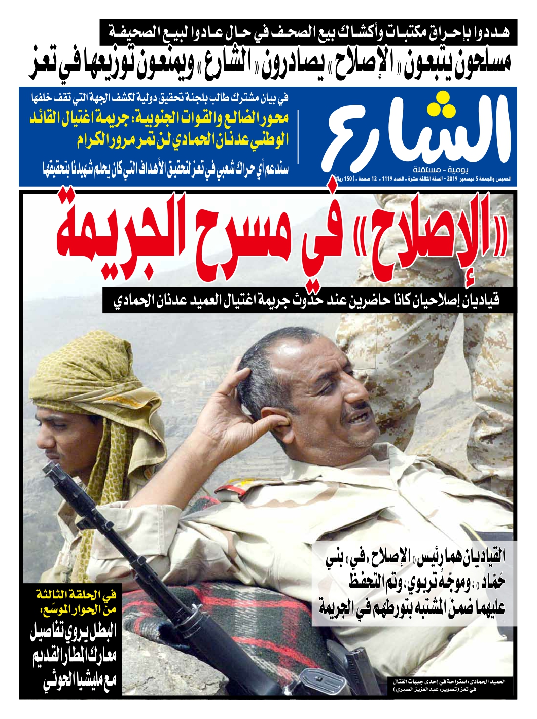 < صحيفة «الشارع» اليومية الورقية، 5 ديسمبر 2019 العدد 1119
