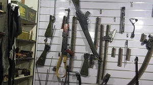أسلحة متوسطة وثقيلة، محل عرض على باب أحد متاجر السلاح