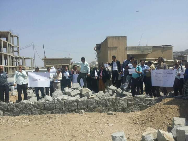 نفذ عدد من طلاب جامعة تعز، صباح أمس، وقفة احتجاجية داخل أرضية تابعة للجامعة، تم البسط عليها، الثلاثاء الماضي، بتوجيه من قيادات السلطة المحلية في المحافظة.