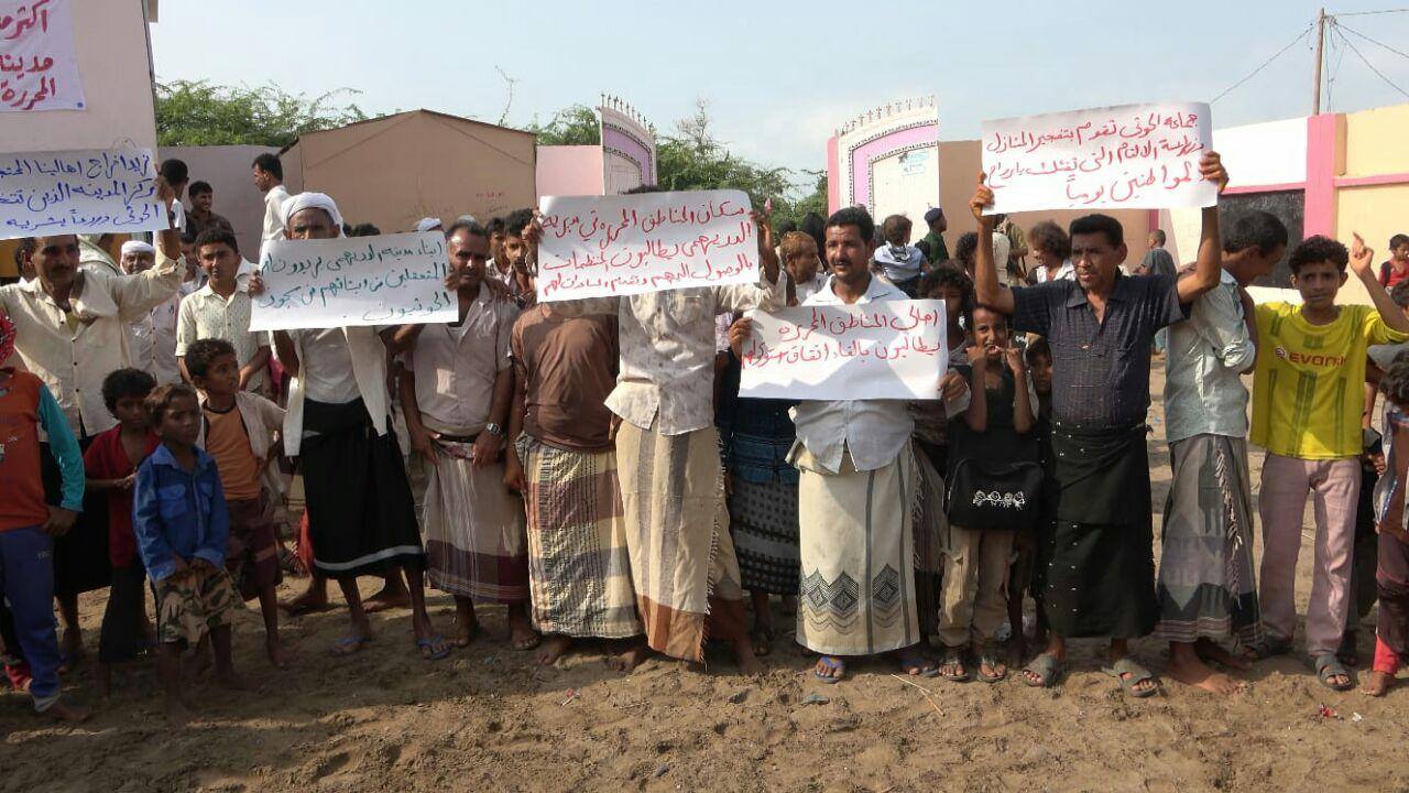 وقفة احتجاجية لأبناء مدينة الدريهمي تندد بجرائم الحوثي واتخاذه المدنيين دروعاً بشرية