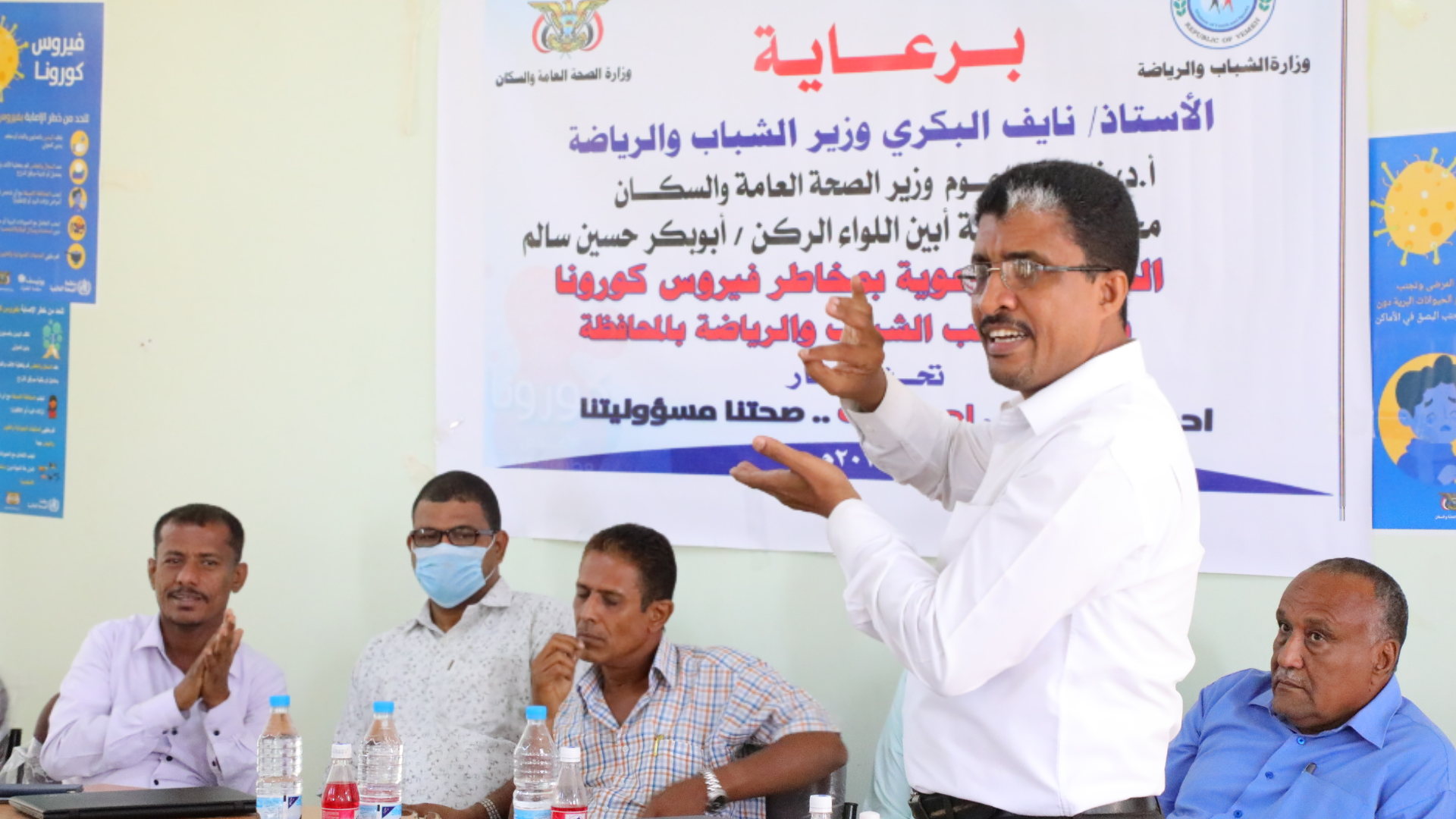 دشَّنتْ صباح أمس، على قاعة المؤسسة المحلية للمياه والصرف الصحي، في مدينة زنجبار، عاصمة محافظة أبين، الدورة التدريبية التوعوية بمخاطر فيروس كورونا تحت شعار (احمي نفسك، احم بلدك، صحتنا مسؤوليتنا)، والتي ينظمها مكتب الشباب والرياضة بالتعاون مع مكتب الصحة والسكان في المحافظة.