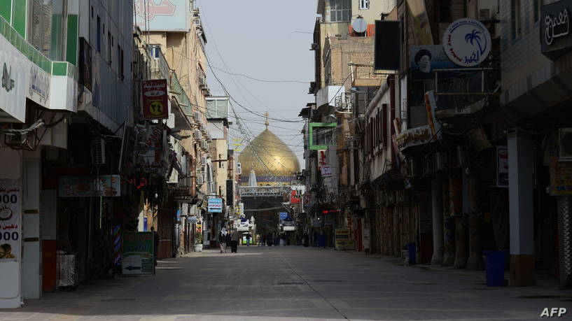 The usually busy area of the Imam Ali Shrine in the central Iraqi holy city of Najaf is pictured empty on March 18, 2020 amidst the coronavirus COVID-19 pandemic. (Photo by Haidar HAMDANI / AFP)
