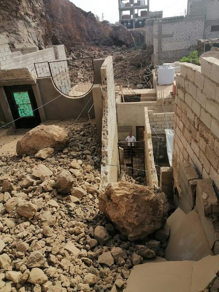 تضررت عدد من المنازل في مدينة كريتر، التابعة لمحافظة عدن، بسبب انهيارات صخرية وقعت، اليوم الثلاثاء، من إحدى المرتفعات المطلة على المدينة، ولم ينتج عنها أي ضحايا في أوساط السكان.