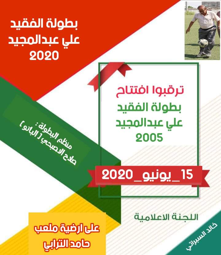 تسحب في السابعة والنصف من مساء اليوم السبت قرعة بطولة الفقيد علي المجيد لمواليد 2005م، في ملعب نادي وحدة عدن في الشيخ عثمان، وتقام منافساتها على ملعب حامد الترابي، بمشاركة 32 فريقاً شعبياً، من مختلف مديريات محافظة عدن بنظام خروج المغلوب من مباراة واحدة.