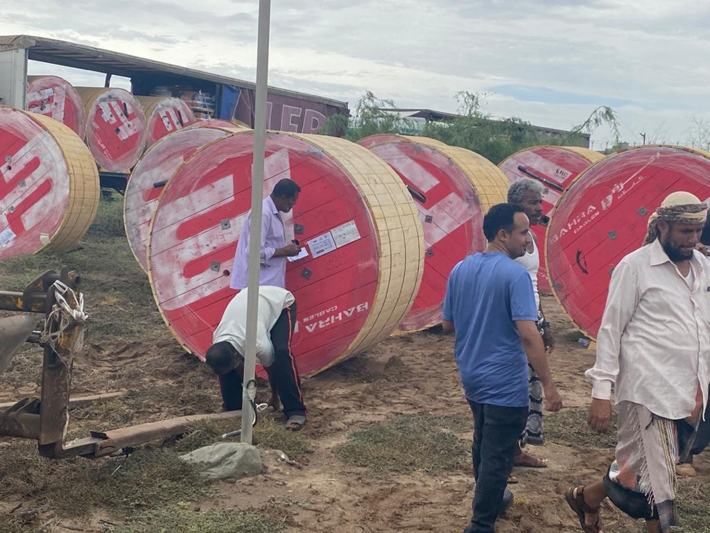 وجرى استلام الكابلات وإيداعها في مخازن مؤسسة كهرباء عدن، المنطقة الثالثة، في مدينة الشعب، ‏بمديرية البريقة.