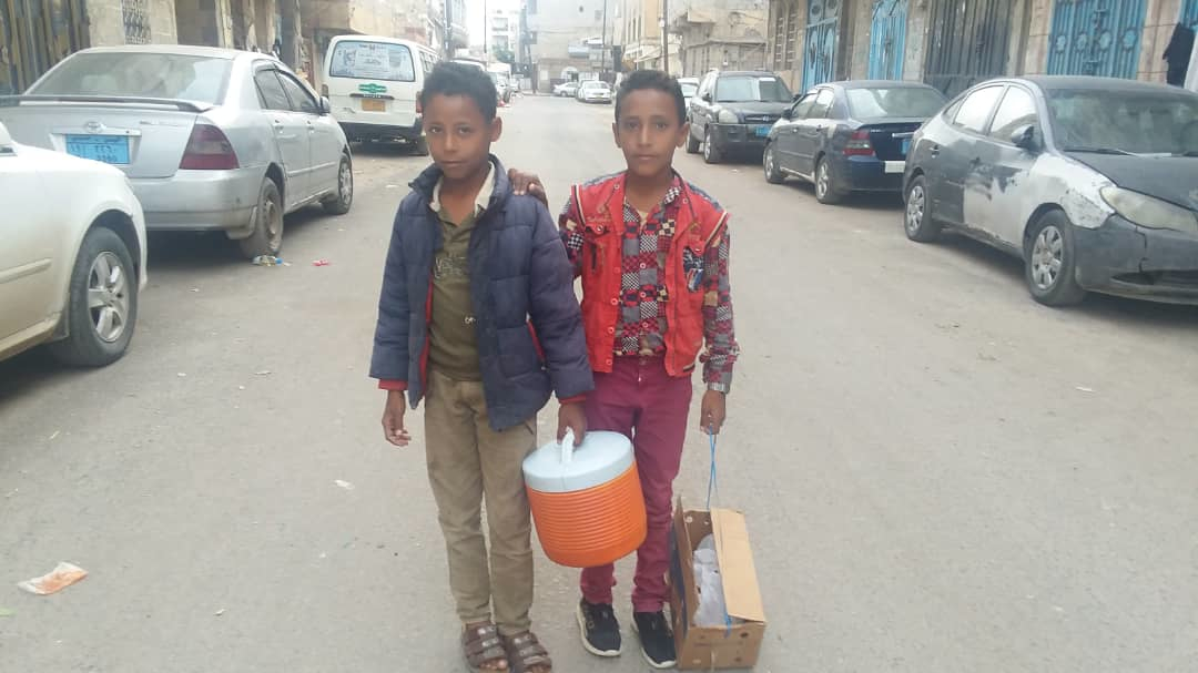 الطاحنة مع الزمن، قال إن اسمه عبدالله، من منطقة ذي السفال في إب، ويسكن مع مجموعة من زملائه حانوتاً في الجوار، ينهضون باكراً لتعبئة ترامسهم بـ 5 كيلو من معمل “جوبح”، ويشترون الأقماع من معمل قريب، ثم يتناولون إفطارهم بشكل جماعي في المقهى القريب، والمكون عادة من “الخمير” والشاي، بعدها يتجمعون ويقومون باستئجار وسيلة تقلهم إلى الأسواق الشعبية في همدان أو في بني مطر أو خولان، حيث يستطيعون بيع بضاعتهم على المتسوقين في الأصياف الحارة، حين يكون الإقبال عليها كبيراً.