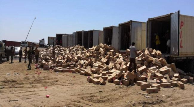 تمت عملية الإتلاف في جمارك المنطقة الحرة، وحضور المختصين من جميع الجهات المختصة في عدن.
