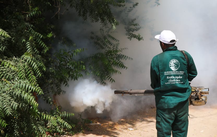 دشن، اليوم، مدير عام مديرية المنصورة، في محافظة عدن، أحمد علي الداؤدي، حملة الرش الضبابي، ضمن مشروع الاستجابة الطارئة لمكافحة حمى الضنك، بتمويل من مركز الملك سلمان للإغاثة والأعمال الإنسانية.