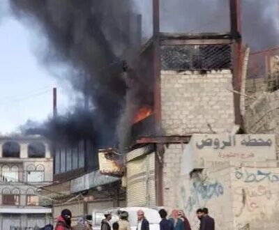 حريق هائل يلتهم محالات تجارية في صنعاء