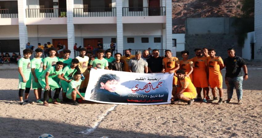احتضن ملعب ثانوية جرادة، في مدينة التواهي بعدن، عصر اليوم السبت، فعالية الوفاء للراحل الفقيد جمال مهدي، التي نظمها أصدقاء الفقيد، وجمعت فريقي البنجسار والكحلي.