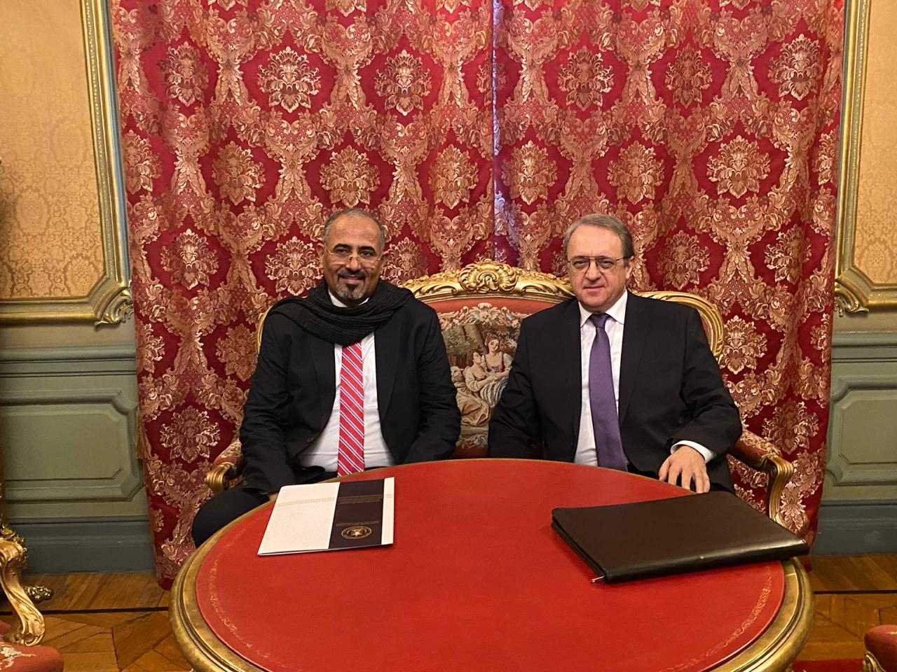 وكان رئيس المجلس الانتقالي الجنوبي، والوفد المرافق له، التقى أمس الأول، نائب وزير الخارجية الروسية ميخائيل بوغدانوف، الممثل الخاص للرئيس فلاديمير بوتن إلى الشرق