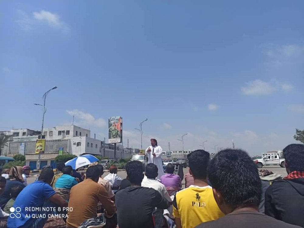 شارك العشرات من سكان مدينة عدن، في أداء صلاة الجمعة، بساحة العروض في مديرية خور مكسر، احتجاجاً على تردي الأوضاع وانهيار الخدمات، في المحافظة.