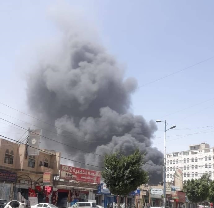 شب حريق هائل، ظهر اليوم الإثنين، في مستودع سوق سوداء لبيع المشتقات النفطية في صنعاء الخاضعة لسيطرة ميليشيا الحوثي الانقلابية.