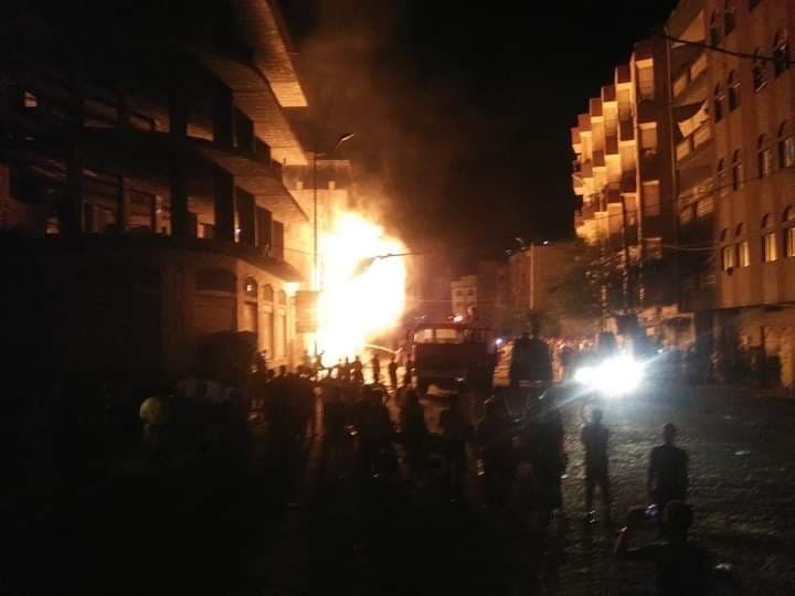 حريق يلتهم محطة وقود عشوائية في حي الضبوعة وسط مدينة تعز
