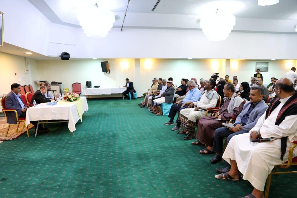 واستمع إلى مداخلات الحاضرين، الذين اكدوا على أهمية الزيارة وتواجدهم في محافظة حضرموت، لمناقشة أوضاع وهموم أبناء المحافظة وتخفيف وطأة الأعباء المعيشية جراء الحرب الشعواء التي تخوضها مليشيا الحوثي المدعومة إيرانيًا، كما استمع الى جملة من القضايا والموضوعات المرتبطة بالخدمات والاوضاع الاقتصادية والمعيشية.