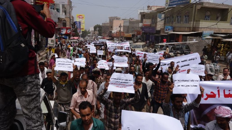 وانطلقت مسيرتين حاشدتين، إحداها في مدينة تعز والأخرى في مدينة التربة مركز مديرية الشمايتين، للمطالبة بالقبض على جميع