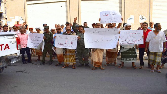 كما طالب المحتجون، التحالف العربي والحكومة بسرعة العمل على صرف مرتباتهم المتوقفة منذ ثمانية أشهر، واتهموا البنك المركزي بعرقلة صرفها.