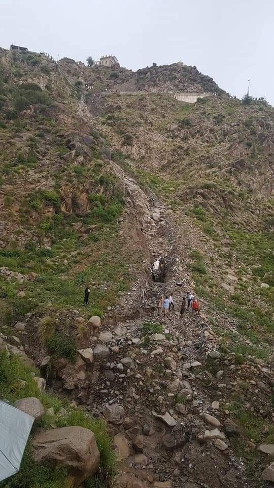 وفاة امرأتين وإصابة 5 آخرين بحادث سقوط سيارة من أعلى جبل صبر في تعز