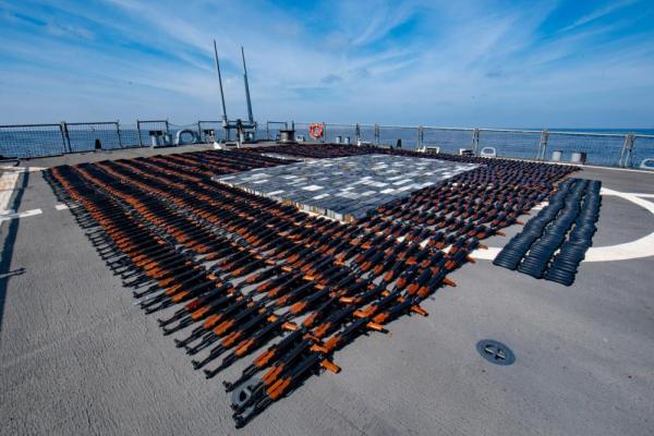 وقال بيان للبحرية الأمريكية، مساء الأربعاء، إن السفن الساحلية لدوريات البحرية الأمريكية عثرت على الأسلحة أثناء بحث أجراه أفراد من خفر السواحل الأمريكي. وتم نقل الأسلحة والذخيرة غير المشروعة في وقت لاحق لفحصها.