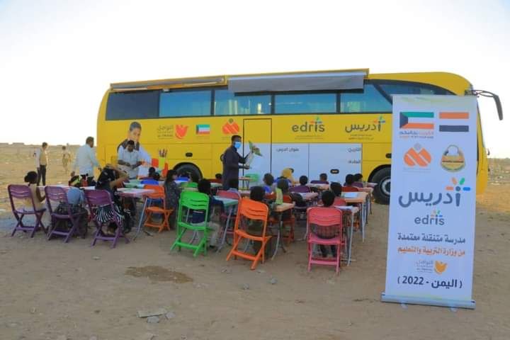 ومدرسة “إدريس” المتنقلة عبارة عن باص كبير مجهز بوسائل تعليمية، تهدف إلى مساعدة الأطفال من الانقطاع عن التعليم وتجاوز الأمية.
