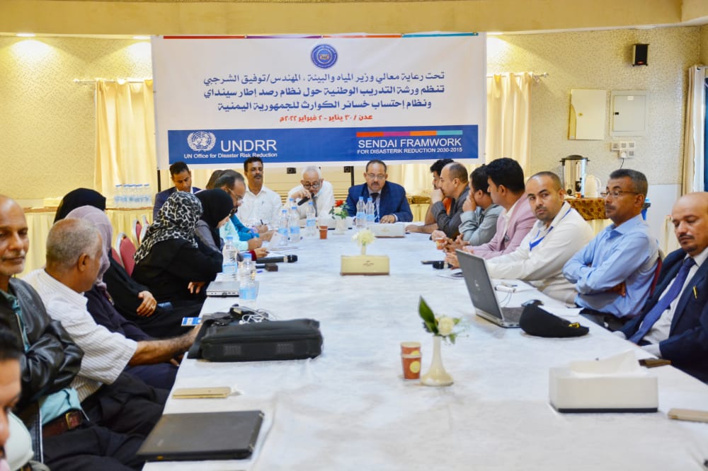 نظمت وزارة المياه والبيئة، اليوم الأحد، في العاصمة المؤقتة عدن،، ورشة عمل حول نظام مراقبة إطار سنداي ونظام احتساب خسائر الكوارث لليمن.