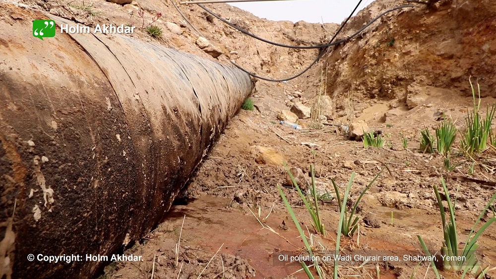 وأوضح التقرير، الصادر، اليوم الاثنين، عن منظمة “حلم أحضر“، أن مديرية الروضة، في محافظة شبوة، تتعرض منذ العام 2020، وحتى اليوم، لتلوث نفطي مستمر، جراء تلف أنبوب إمداد النفط، الذي يربط حقول الإنتاج بخزانات التصدير في “القطاع 4”.