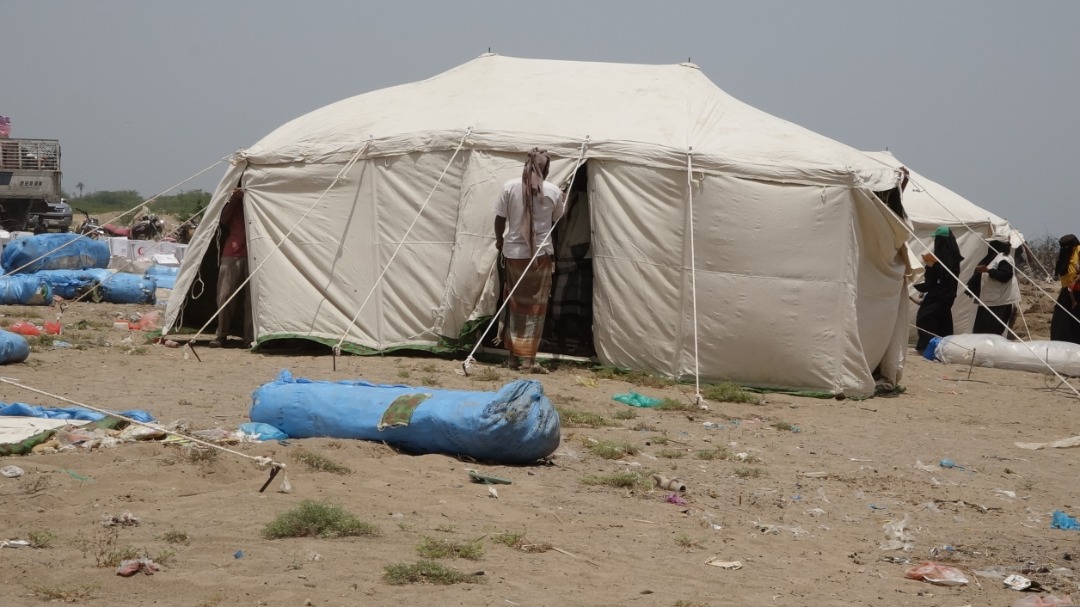 ووزعت إنسانية المقاومة الوطنية، الخيام والسلال الغذائية، بدعم من هيئة الهلال الأحمر الإماراتي، للأسر المتضررة كافة، والذي يحوي عشرات الأسر المهجَّرة من مدينة ومناطق الحديدة الواقعة تحت سيطرة مليشيات الحوثي.