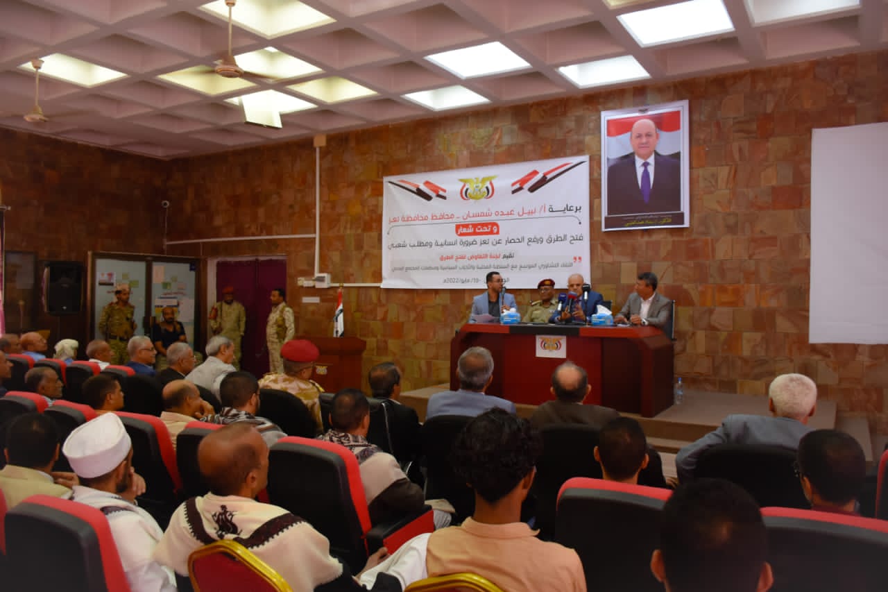 أما رئيس لجنة التفاوض الحكومية لفتح طرق تعز عبدالكريم شيبان، فاستعرض جهود اللجنة منذ بداية عملها في العام 2016 م. التي قال: إنها خلصت إلى الاستجابة الدائمة للسلام والالتزام بالمفاوضات.