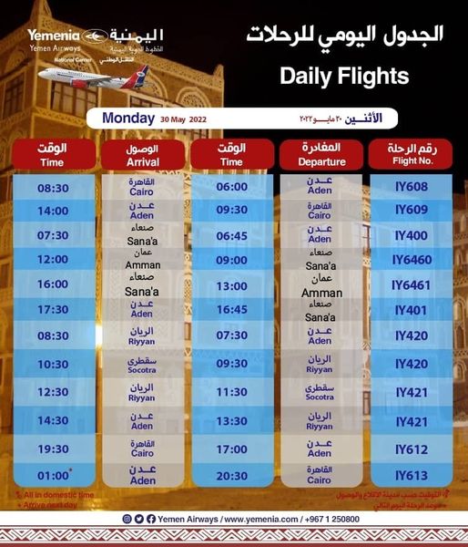 أعلنت شركة الخطوط الجوية اليمنية، اليوم الأحد، عن استئناف رحلاتها المباشرة بين صنعاء وعدن، في خطوة جديدة ضمن اتفاق الهدنة، والأولى للشركة