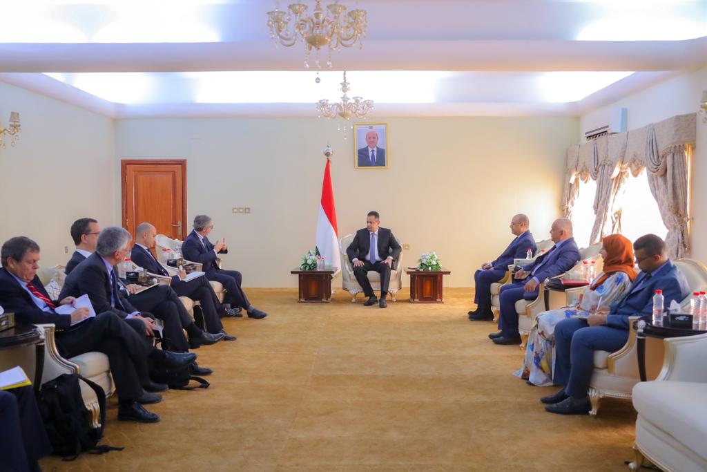 بحث رئيس الوزراء معين عبدالملك، في لقائه، اليوم الأربعاء، في العاصمة المؤقتة عدن، وفد الاتحاد الأوروبي، حشد الجهود لتوفير دعم عاجل لتحقيق الأمن الغذائي مع التطورات العالمية الراهنة، واستكمال تنفيذ برنامج الإصلاحات الهيكلية، وفرص تجديد الهدنة.