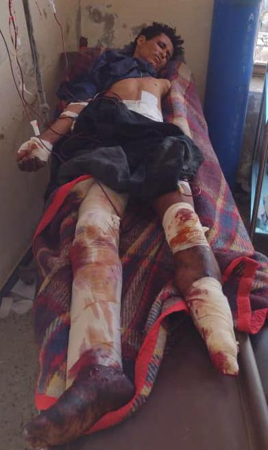 وأوضح الشهود، أن انفجار اللغم أدى إلى بتر قدم محمد اليسرى من الركبة، وكسور متعددة في القدم اليمنى.