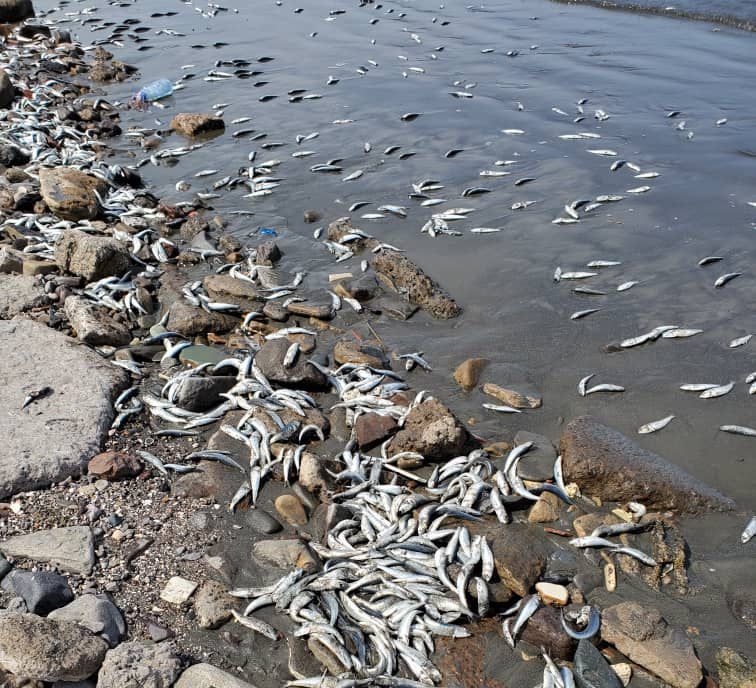 وشوهد نفوق الأسماك، بأعداد كبيرة على امتداد اثنين كيلو متر من ساحل أبين، شرقي محافظة عدن.