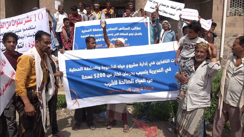 وناشد المحتجون، مدير هيئة الموارد المائية ومحافظ المحافظة نبيل شمسان، التدخل في وقف هذه الإجراءات التعسفية وتنفيذ المشروع الإغاثي.