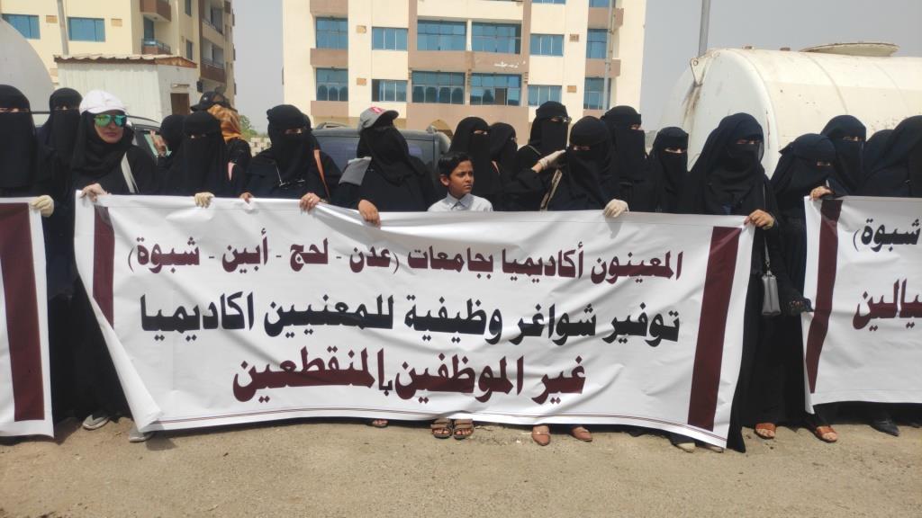 عدن.. وقفة احتجاجية للمعينين أكاديميا في 4 جامعات للمطالبة بتسويات وظيفية