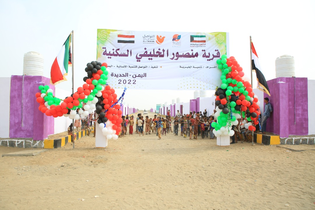 الحديدة.. افتتاح قرية سكنية مكونة من 100 منزل جديد لإيواء النازحين في مدينة الخوخة بدعم كويتي