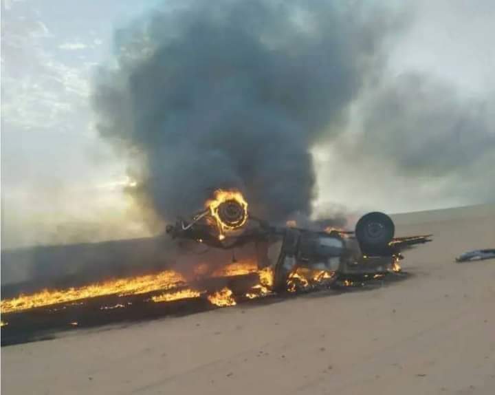 مقتل مدنيين أحدهما طفل واحتراق سيارة بانفجار لغم حوثي في طريق الجوف ـ مأرب