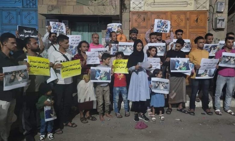 وأدان بيان صادر عن الوقفة الاحتجاجية ما سماه “التعامل الأممي مع الحوثيين، والتماهي مع جرائمهم وانتهاكاتهم اليومية ضد المدنيين في المدينة”.