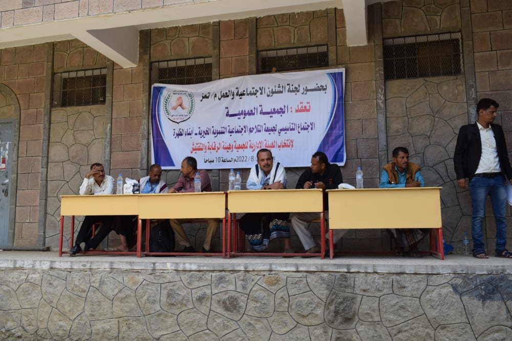 عقدت الجمعية العمومية لجمعية التلاحم الاجتماعية التنموية الخيرية لأبناء عزلة الظهرة بمديرية المعافر، في محافظة تعز، اليوم الاثنين، اجتماعها التأسيسي لانتخاب واختيار الهيئة الإدارية للجمعية.