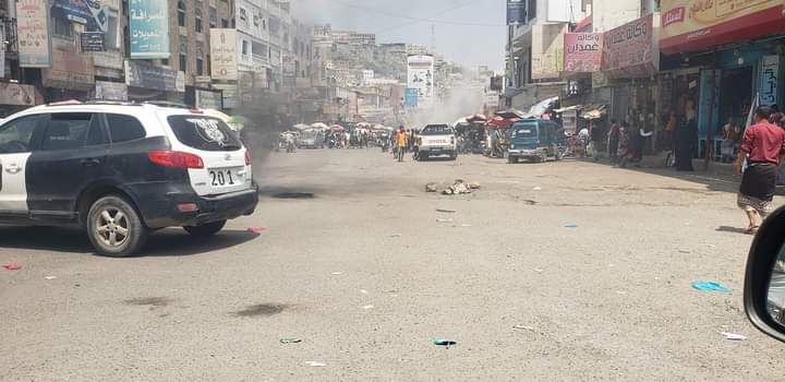 تعز.. مسلحون يقطعون شارع جمال احتجاجا على مقتل جندي