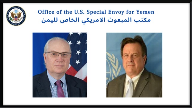 بحث المبعوث الأمريكي إلى اليمن تيم ليندر كينغ، اليوم السبت، مع منسق الأمم المتحدة للشؤون الإنسانية ديفيد غريسلي، سبل تعزيز الجهود لسد فجوة التمويل لخطة تفريغ الناقلة صافر.
