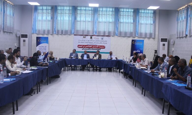 نظمت، اليوم السبت، في العاصمة عدن، ورشة عمل حول أزمة الأمن الغذائي في اليمن، لبحث الفرص والتحديات وسبل تعزيز الجهود المشتركة بين القطاعين العام والخاص لتحقيق الاستقرار في الأمن الغذائي.
