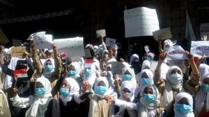 طلاب في جامعة تعز يحتجون تنديدا باختفاء زميلة لهم ومسؤول أمني ينفي حوادث الاختطاف