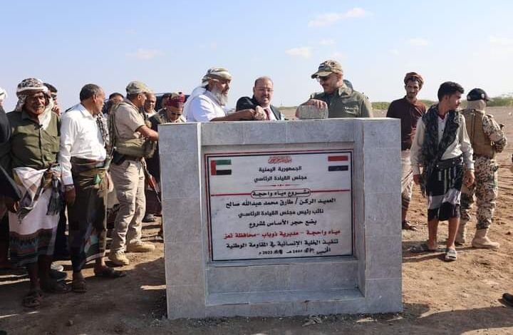 وضع عضو مجلس القيادة الرئاسي، العميد الركن طارق محمد عبدالله صالح، ومعه رئيس مجلس النواب الشيخ سلطان البركاني، اليوم الخميس، حجر الأساس لمشروعي مياه الشرب في مديرية ذو باب غربي محافظة تعز، جنوب غربي اليمن.